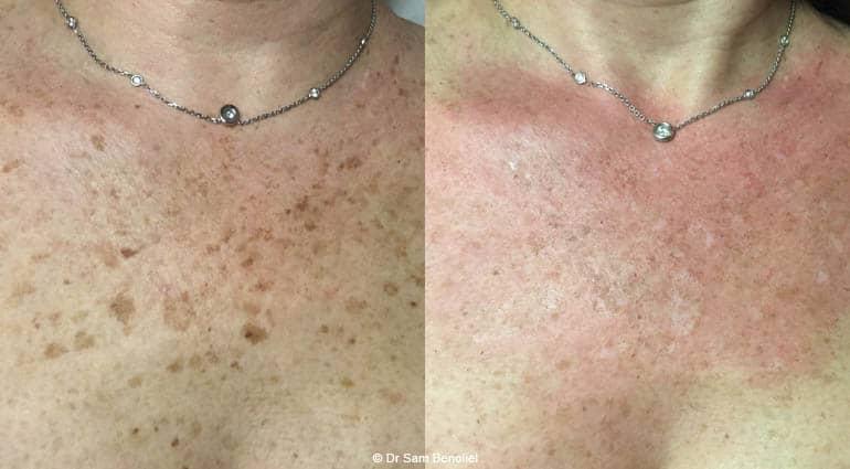Au bout de 5 jours, la peau est complètement régénérée, cicatrisée mais restera plus rouge que le reste du visage. Il faudra alors entre un mois et demi et 3 mois selon la profondeur traitée pour que les rougeurs disparaissent définitivement. Aussi, il est interdit de s’exposer au soleil pendant au moins deux mois.